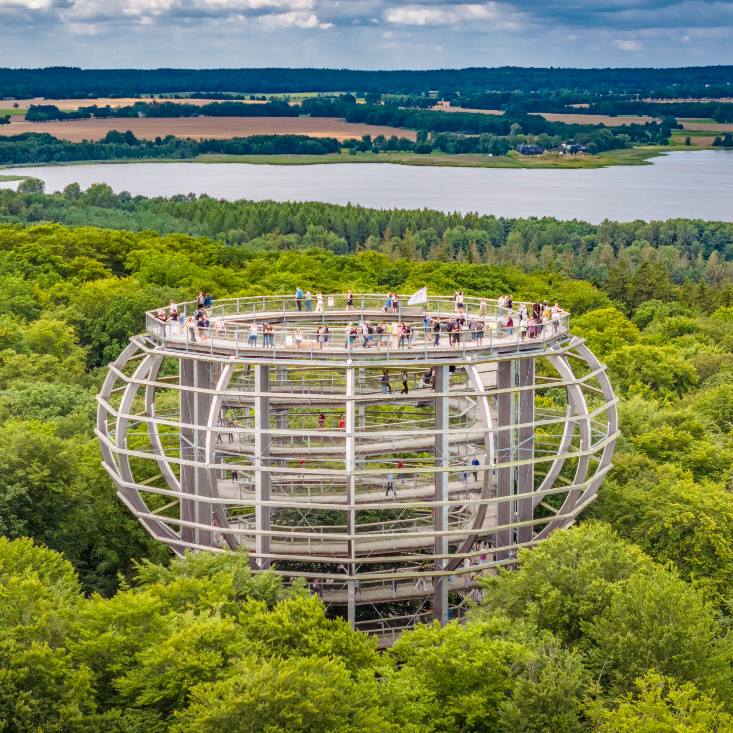 Der Baumwipfelpfad im Naturerbe Zentrum Rügen führt auf Augenhöhe durch die Baumkronen. Der barrierearme Weg und der Aussichtsturm bieten tolle Perspektiven über die Insel und sind ein starkes Ziel für Familien und Naturfans.
